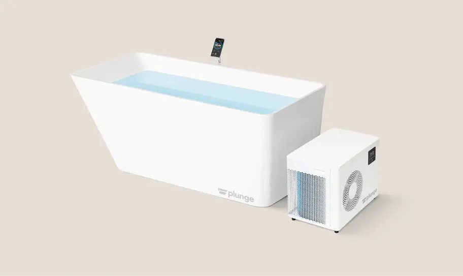 The Plunge: Original Cold Plunge Tub offers powerful cooling, filtration, and sanitation for perfectly chilled, clean water. With an XL-sized tub accommodating individuals up to 6 feet 8 inches (203 cm) tall, it features enhanced insulation for superior temperature retention. The easy set-up and user-friendly app allow for effortless temperature control.
